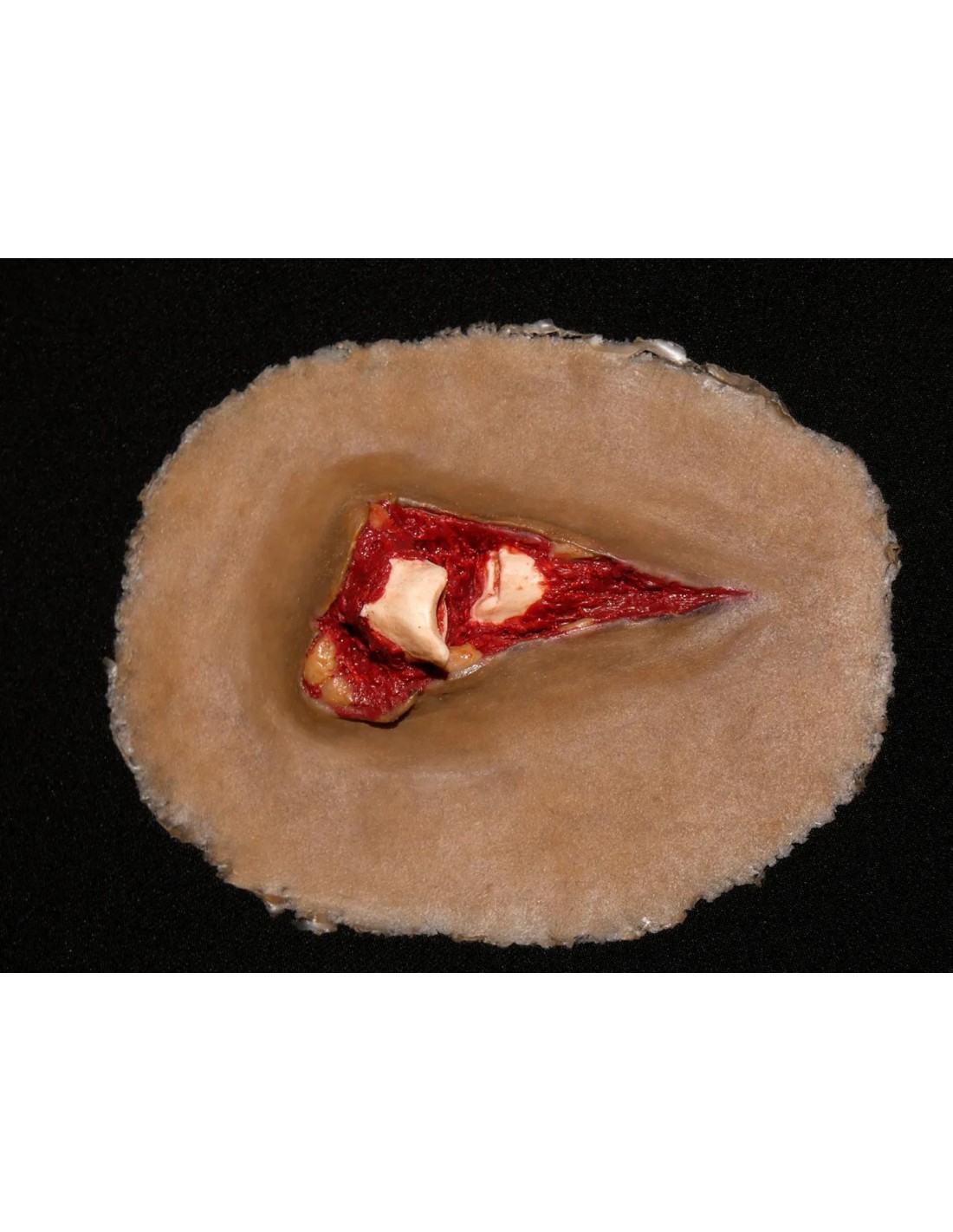 Papildomų klijų nereikia. Žaizda tvirtai laikosi, yra realistiška ir tinkama naudoti įvairiuose medicinos, pirmosios pagalbos ar taktinio rengimo mokymuose.
