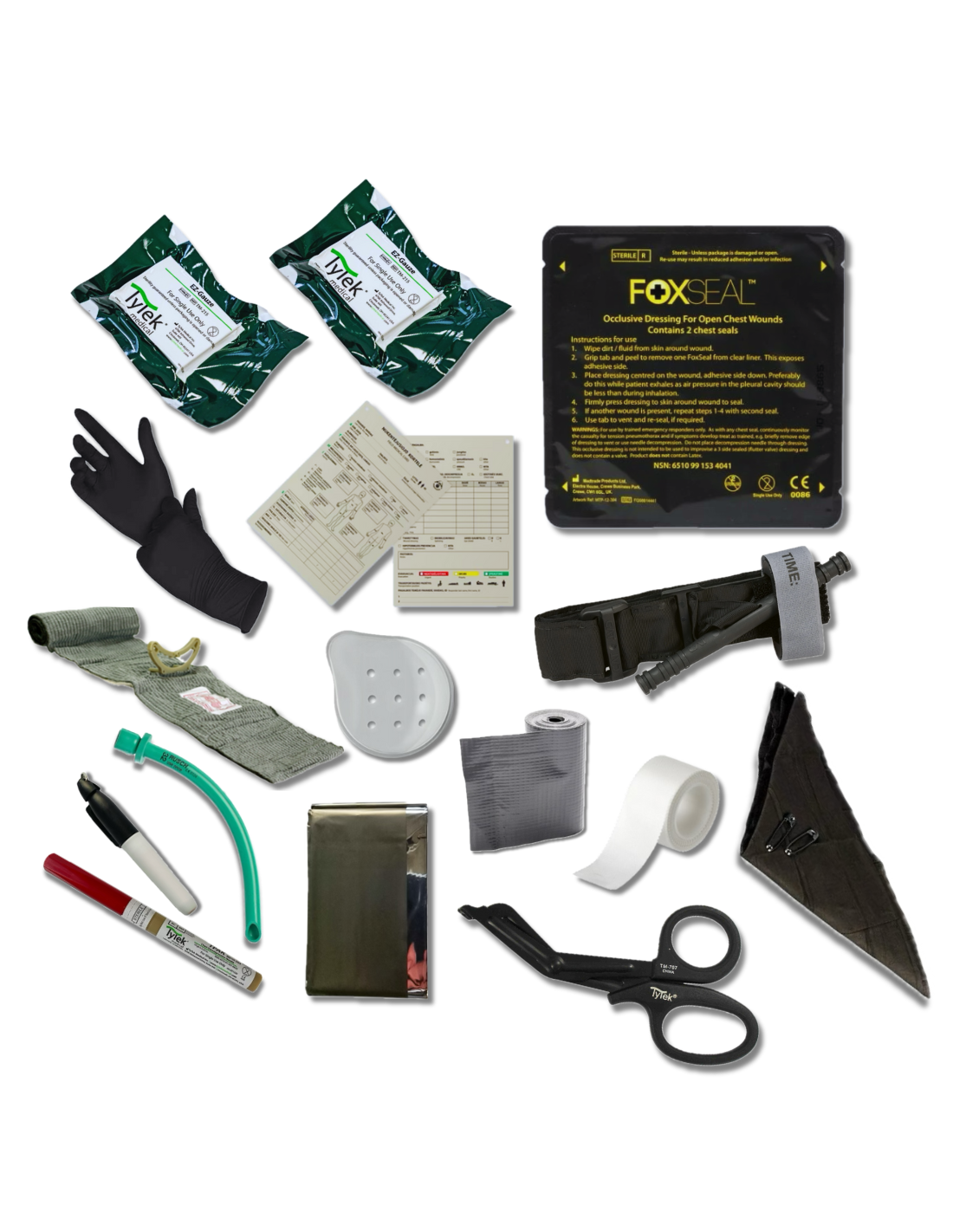 Prie rinkinio rekomenduojame įsigyti tvarstį su hemostatine medžiaga "QuikClot Combat Gauze" https://artzena.lt/lt/produktai/166-hemostatinis-tvarstis-.html